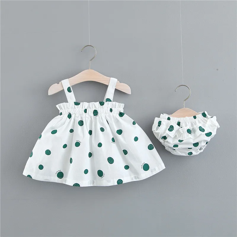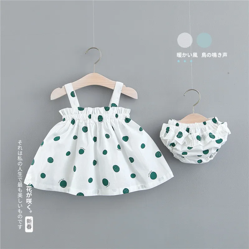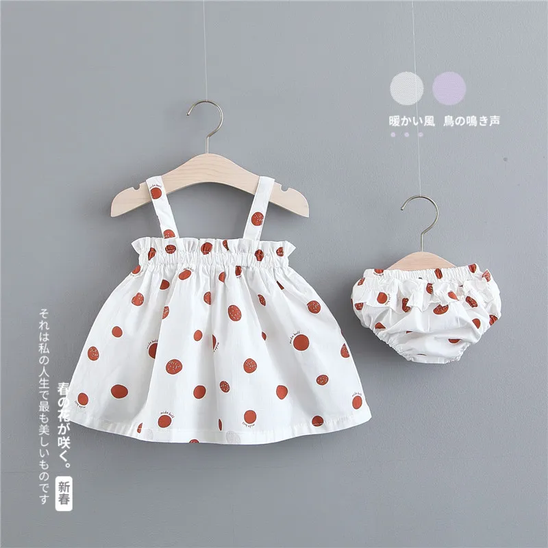 2019 new toddler baby girl summer fashion Korean polka dot sling sleeveless dress + underwear 2PCS