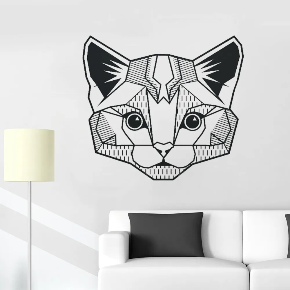 Geometric Cat Wall Decal Bedroom Baby Room Large Art Abstract Feline Wall Sticker Kitty Face Decal