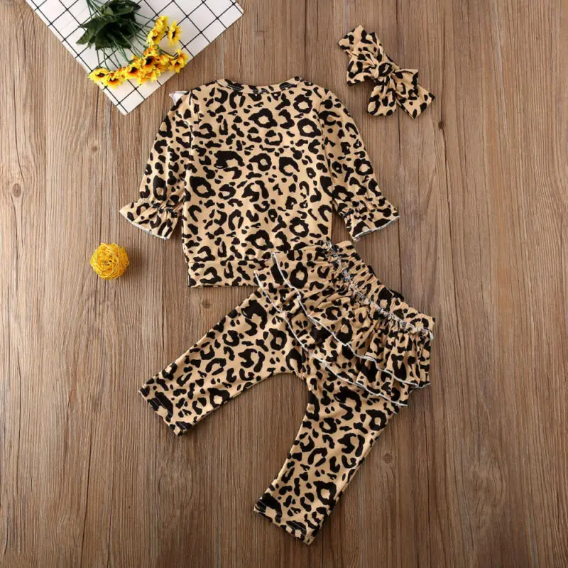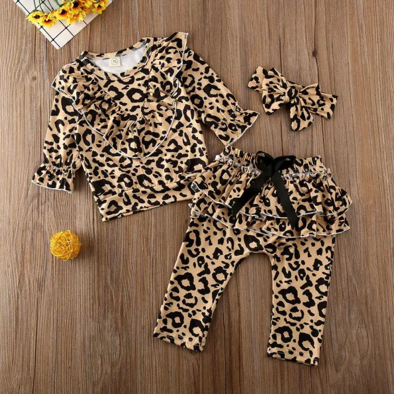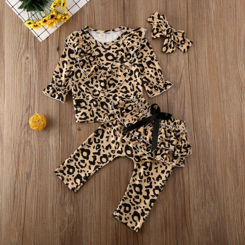 TOP Toddler Baby Girl Clothes Leopard Tops+Ruffle Pants Headband Outfit Fashion Kids Baby Girls Clothes