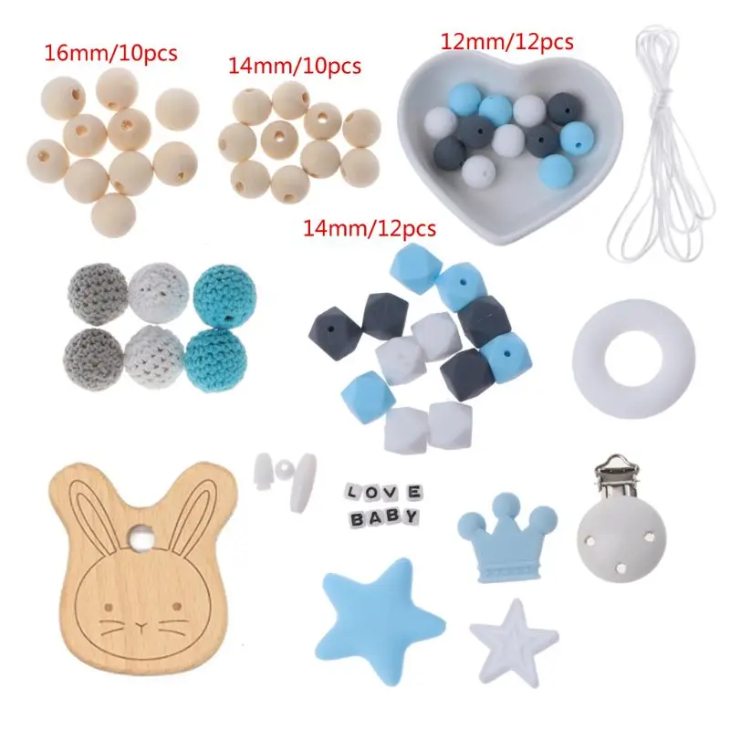 Silicone Beads Pacifier Clip Baby Teething Beads Set Nursing DIY Chew Jewelry Teething Necklace Tee
