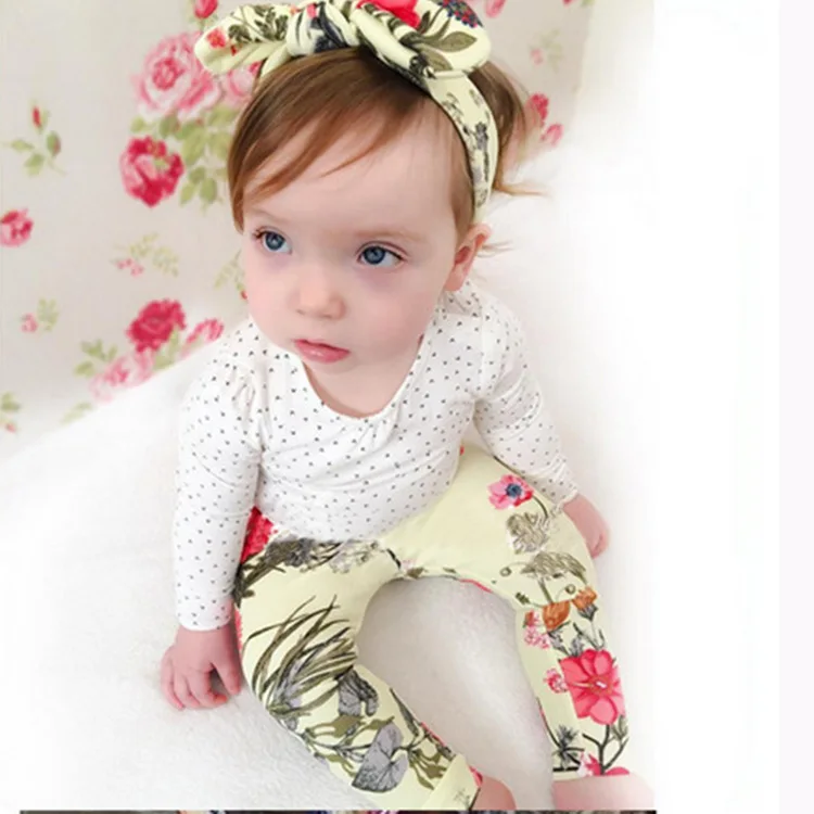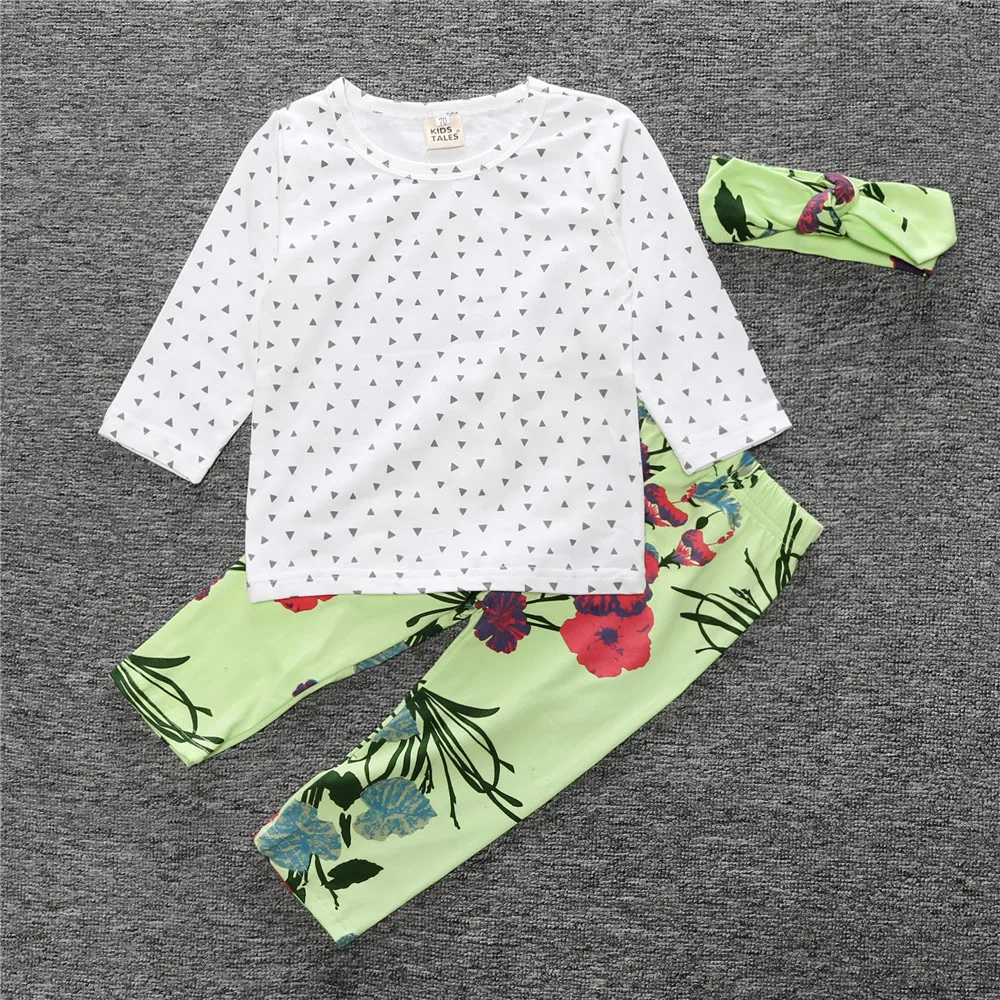 HOT SALE 2016 ins baby girl clothing set long sleeve triangle T-shirt+ pants+headband 3pcs Infant bebe girl