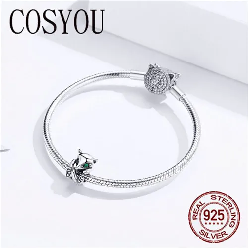 COSYOU 2019 Baby Fox Animal Metal Charm fit Original Silver Snakle Bracelet 925 Sterling Silver Fas