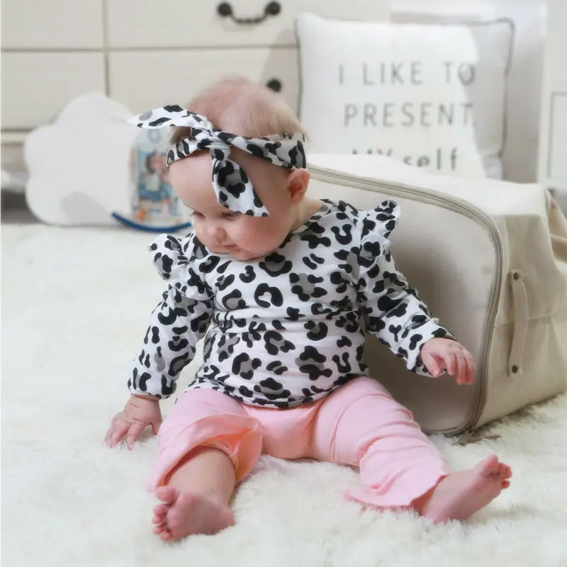 BEST SELLER 0-24M Newborn Baby Girls Clothing Set Autumn Winter Ruffles Leopard Tops + Pants Headband Outfits I